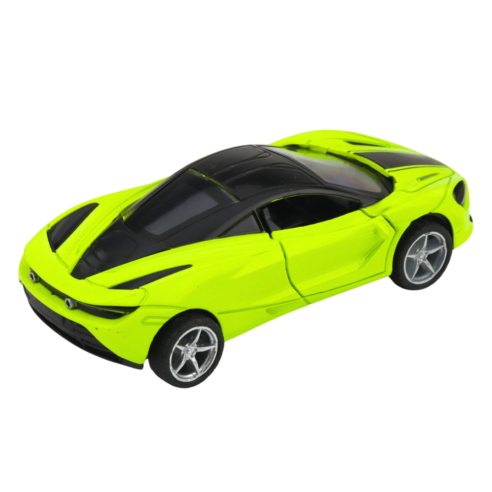 Stilski metalni sportski automobil u mjerilu 1:32 oduševit će male i velike ljubitelje automobila. Ima metalnu karoseriju, povratni (pull-back) pogon, otvarajuća vrata te svjetlosne i zvučne efekte. Kompaktne dimenzije i upečatljiva zelena boja izvrsni su za svakodnevnu igru ili kao kolekcionarski model.