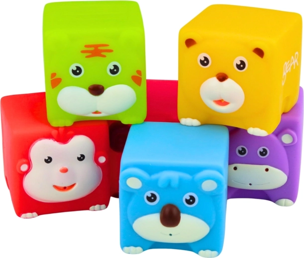 Preslatki set mekanih kocaka u obliku životinjica potiče razvoj fine motorike, koordinacije ruka–oko i senzorne percepcije. Svaka kocka predstavlja drugu životinju i potiče djecu na učenje boja, imenovanje i prve pokušaje slaganja tornjeva. Siguran mekani gumeni materijal lako se hvata i najmanjim ručicama te je idealan za igru kod kuće, na podlozi i tijekom kupanja.