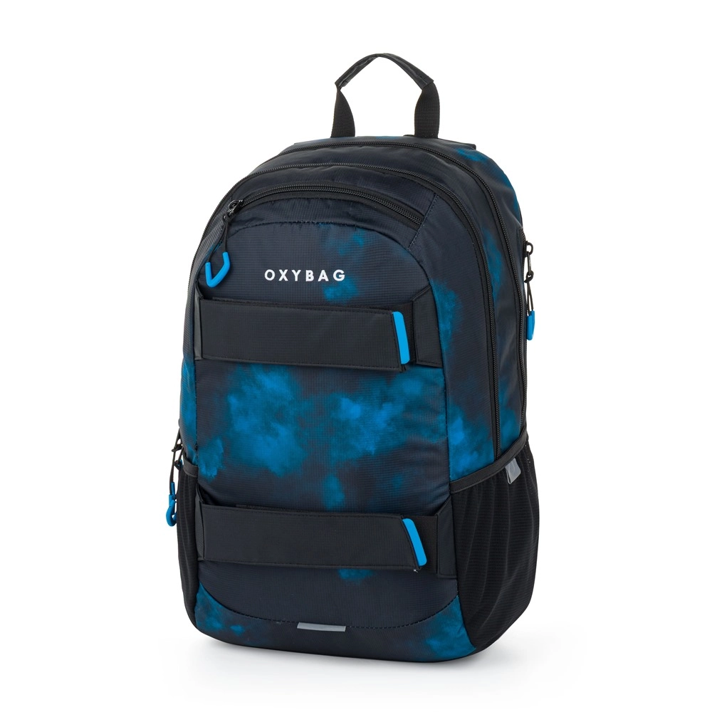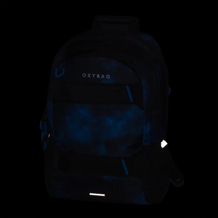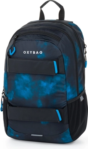 Praktičan školski i slobodno-vremenski set OXYBAG kombinira prostrani studentski ruksak 24 l s pernicom za pisaći pribor. Ruksak nudi ergonomski oblikovana leđa, podstavljene podesive naramenice s prsnom trakom, ojačani pretinac za prijenosno računalo i reflektirajuće elemente za bolju vidljivost. Tu je i bočni džep za bocu, organizator s karabinerom za ključeve i izdržljivi zatvarači. Stilski dizajn Grunge boy upotpunjuje priložena pernica s patentnim zatvaračem i praktičnim elastičnim gumicama.