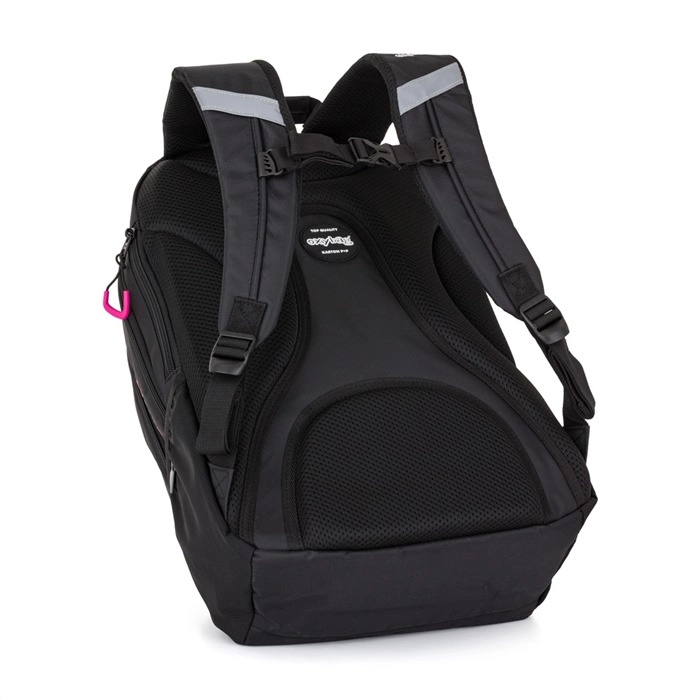 Za udobnost pri nošenju tu su ergonomski oblikovana leđa, podstavljene podesive naramenice i prsni remen. Praktični bočni džep za bocu drži piće pri ruci, a reflektirajući elementi povećavaju vidljivost na putu do škole. Dio seta je i studentska pernica za pribor za pisanje s elastičnim držačima i patentnim zatvaračem za brzu organizaciju.
