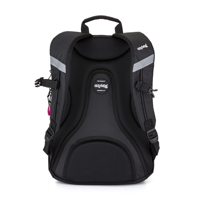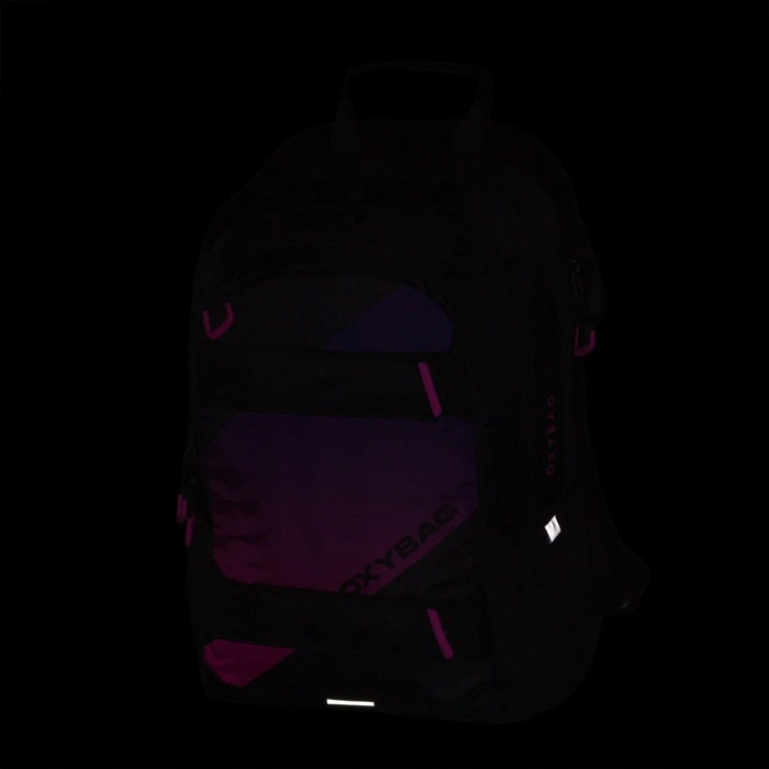 Stilski školski i slobodno-vremenski ruksak OXYBAG u setu s pernicom nudi ergonomski oblikovana leđa, podstavljene podesive naramenice s prsnim remenom i dovoljno prostora za školu i svakodnevno nošenje. Dva glavna pretinca, ojačani pretinac za prijenosno računalo, bočni džep za bocu i brojni reflektirajući elementi osiguravaju udobnost, red i sigurnost. Obujam 24 l, masa 870 g, nosivost 8 kg.