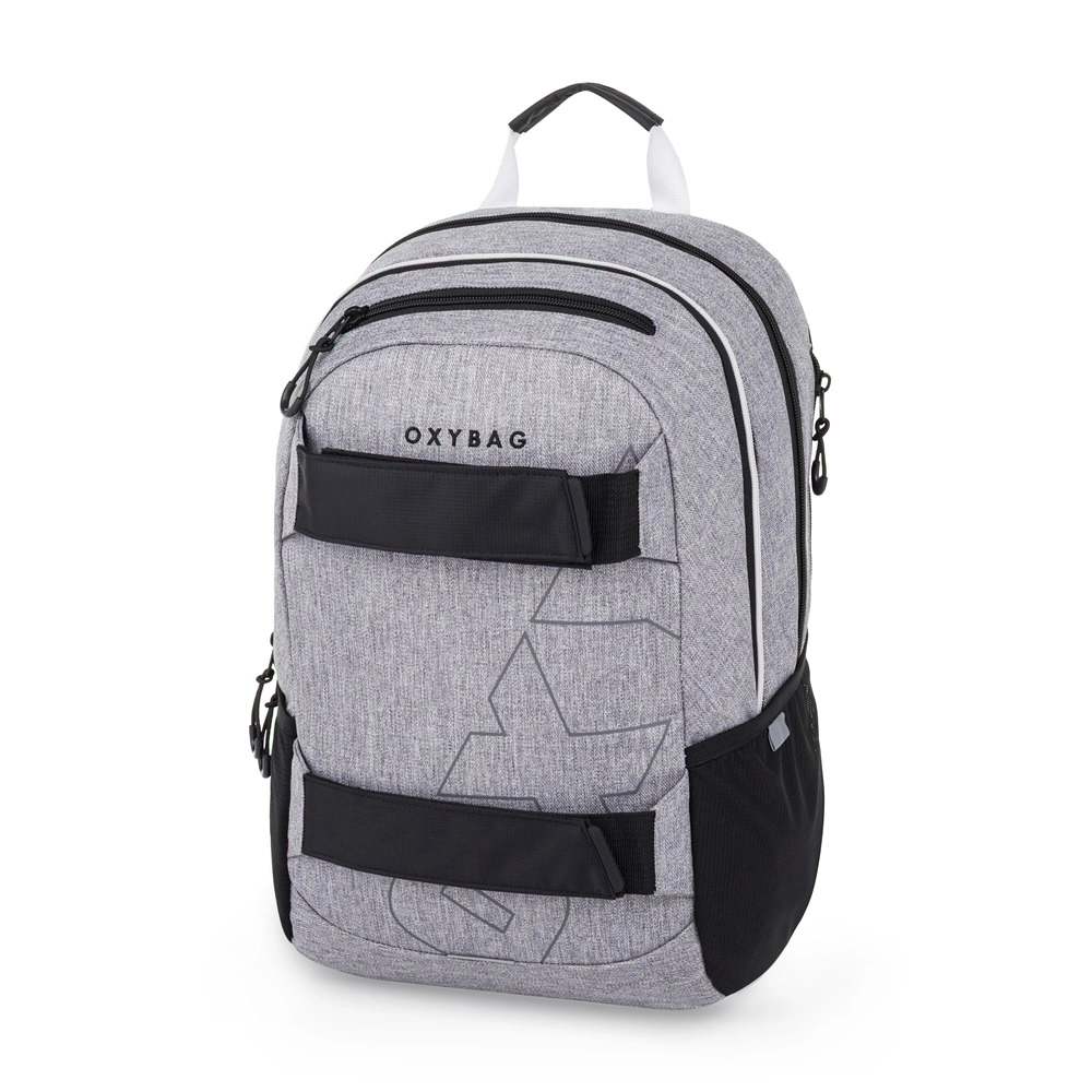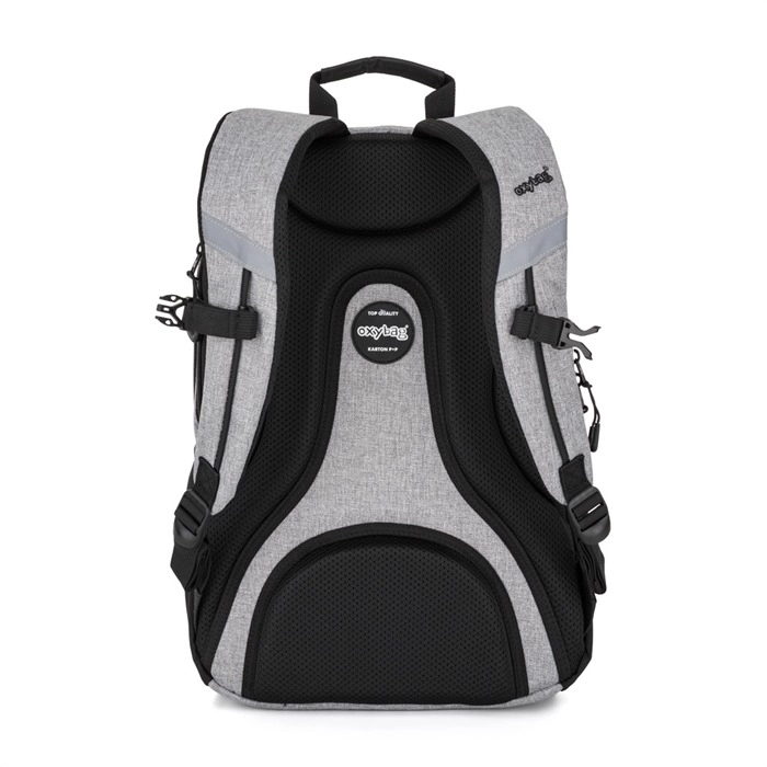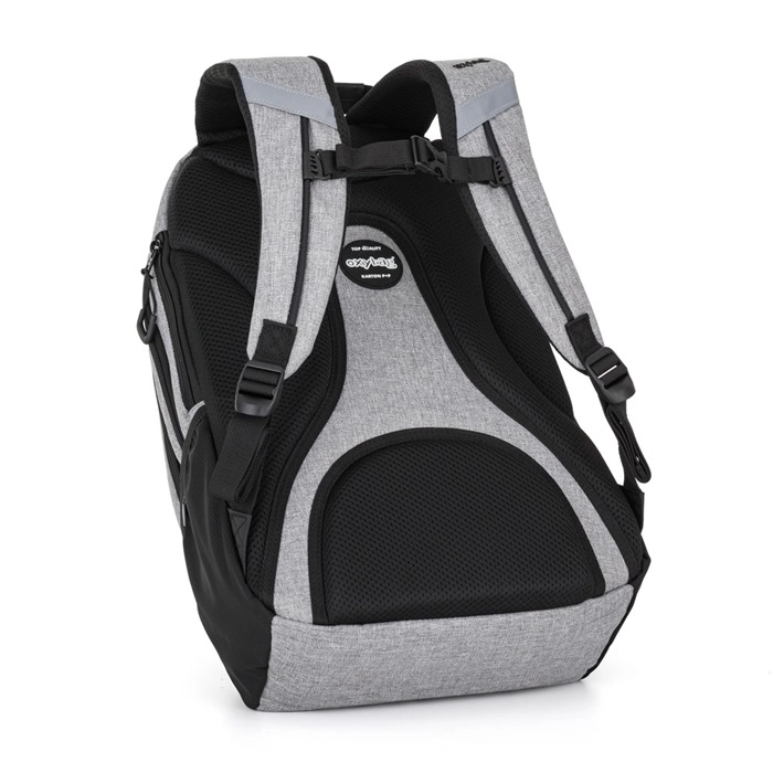Studentska torba OXYBAG Sport Grey Melange dizajnirana je za udobno i sigurno nošenje školskih i slobodnovremenskih stvari. Ergonomski oblikovana leđa, podstavljene podesive naramenice i prsni remen osiguravaju stabilnost na leđima i udobnost tijekom cijelog dana. Dva glavna odjeljka s čvrstim patentnim zatvaračima pružaju dovoljno mjesta za udžbenike, bilježnice i odjeću, dok manji prednji džep omogućuje brz pristup sitnicama.