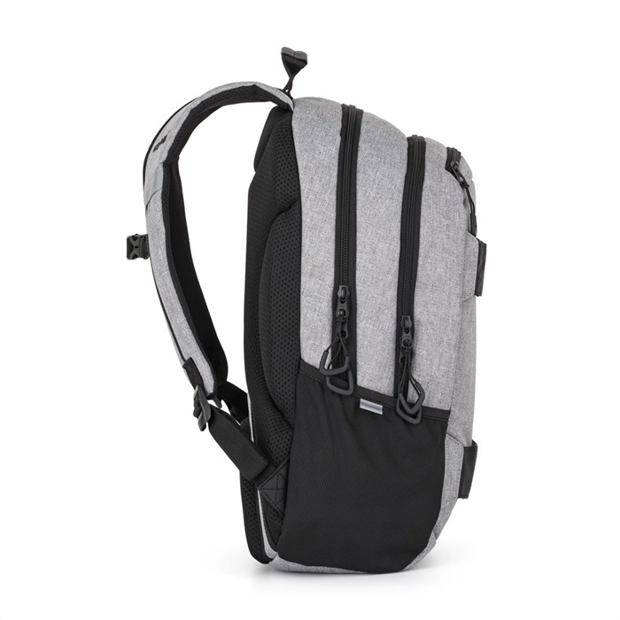 Podstavljene, podesive naramenice, ergonomski oblikovana leđa i prsni remen raspoređuju opterećenje i drže torbu stabilno na leđima i pri cjelodnevnom nošenju.
