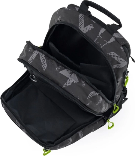 Studentska torba OXYBAG Oxy Sport Abstract dizajnirana je za udobno svakodnevno nošenje. Zahvaljujući anatomski oblikovanim leđima, prozračnoj podstavi i podstavljenim ramenim naramenicama s prsnom trakom, torba se odlično prilagođava tijelu i stabilno stoji čak i pri punom opterećenju. Ne nedostaju kvalitetni zatvarači s povlakačima, izdržljiv materijal i reflektirajući detalji za bolju vidljivost.