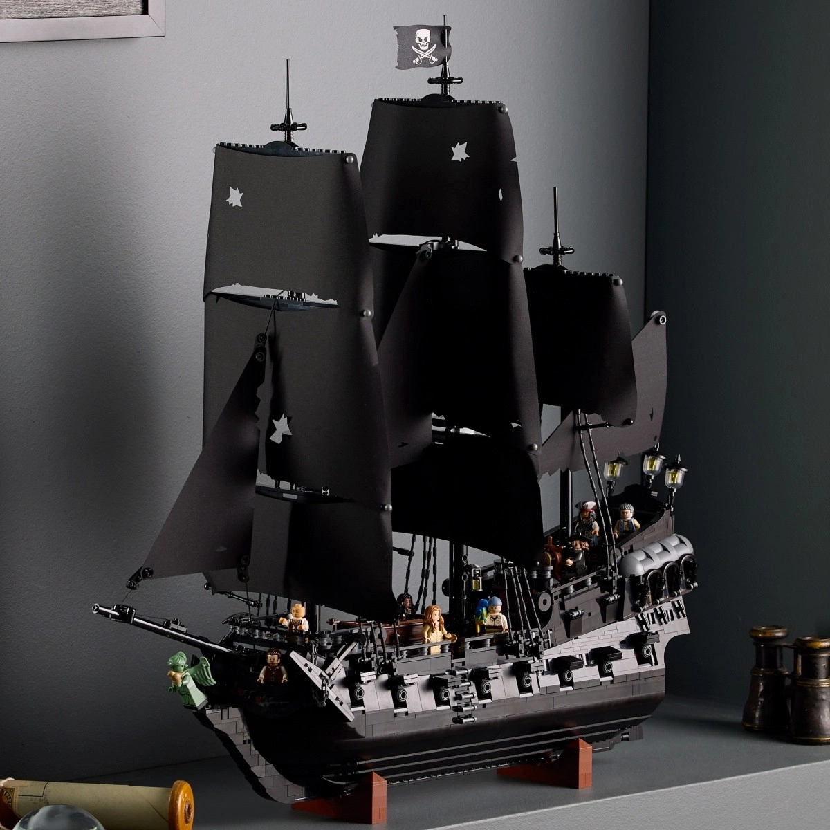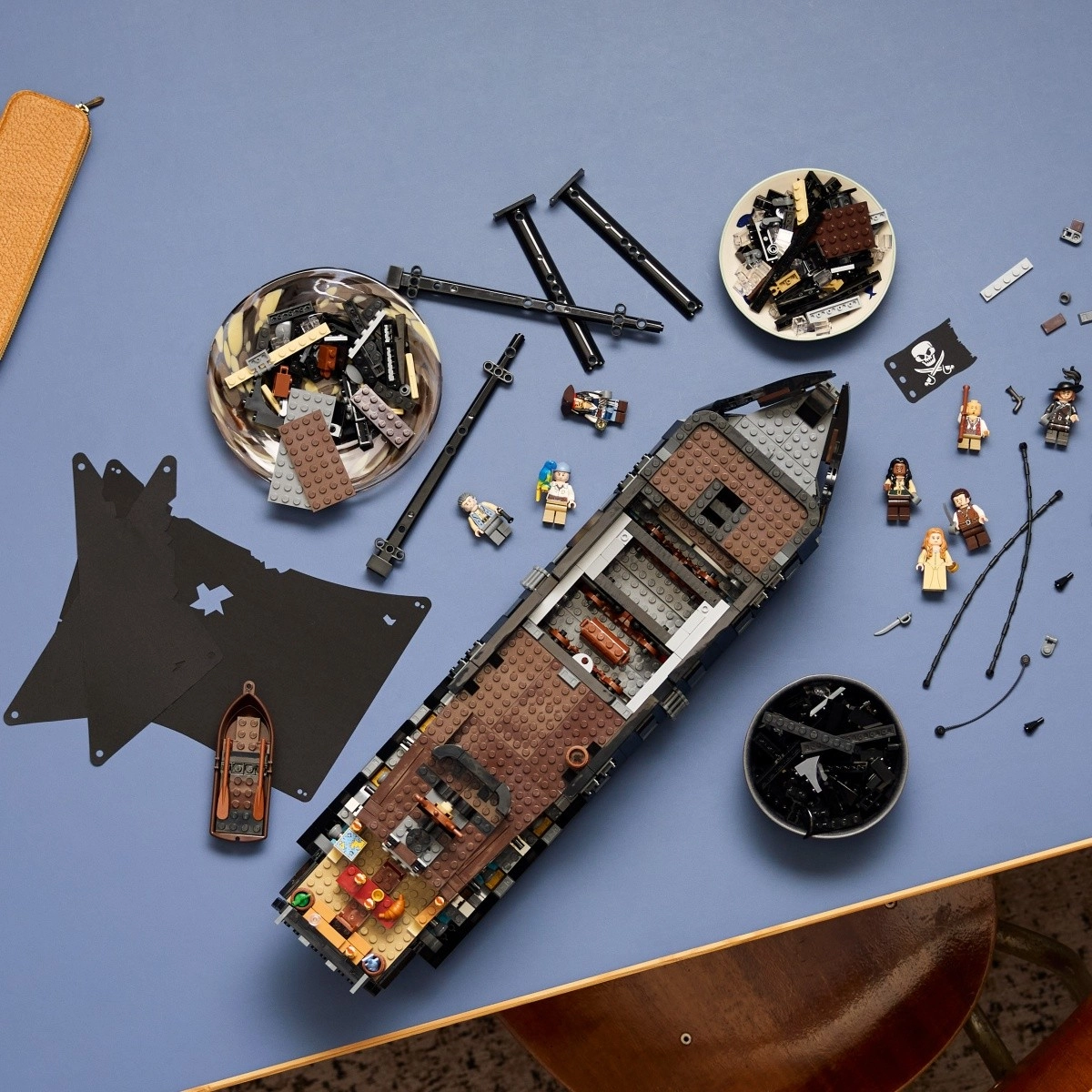 Uživajte u interaktivnim elementima: okrećite upravljačke kotačiće za izbacivanje topova na lijevom i desnom boku, rukujte kormilom, otvorite palubu i istražite kapetanovu kabinu. Trup se može razdvojiti u liniji urona za dinamičnu prezentaciju „u načinu plovidbe“. U kompletu je 8 minifigurica: Jack Sparrow, Will Turner, Gibbs, Cotton, Anamaria, Marty, Elizabeth Swann i Hector Barbossa.