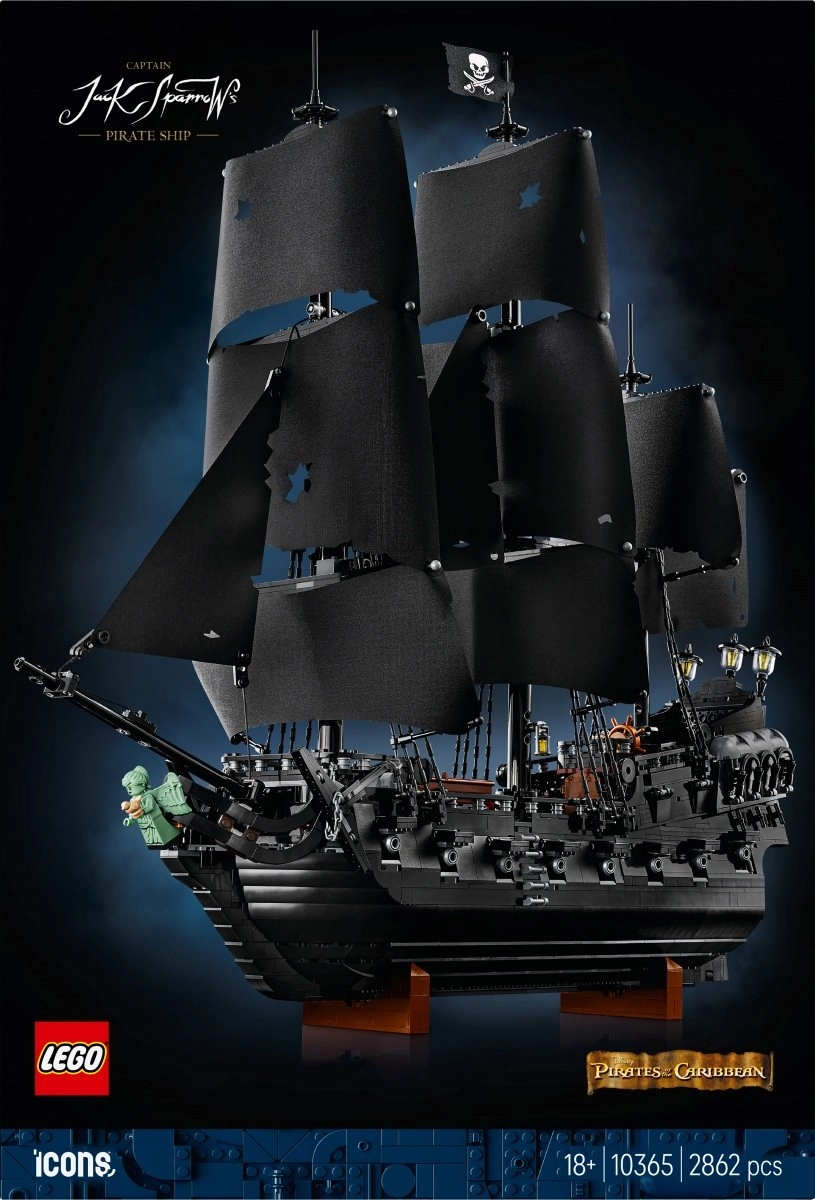 Složite legendarni sablasni galijun inspiriran filmskim serijalom Pirati s Kariba. Model impresionira visokim jarbolima, crnim jedrima sa simbolom lubanje i prekriženih kostiju, bogato razrađenom palubom i interijerom uključujući namještaj, svijećnjake i ikoničnu kapetanovu jabuku. Zahvaljujući univerzalnom postolju, brod lako izložite pod kutom kao dojmljivu dekoraciju za dnevni boravak ili ured.