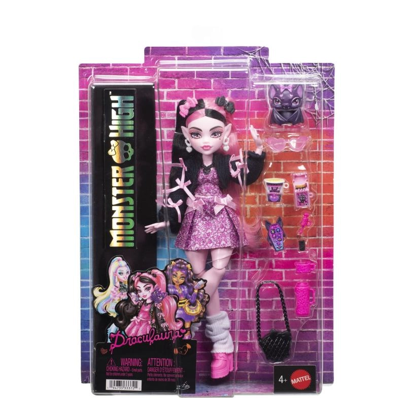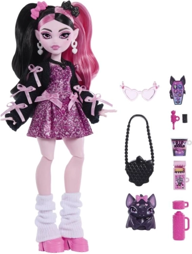 Otkrijte ikonični stil i čar Draculaure u modernom izdanju. Lutka iz linije Monster High oduševljava ružičasto‑crnom kosom, slojevitom odjećom i preciznim modnim detaljima koji potiču maštu i pripovijedanje priča. U kompletu je slatki šišmiš Count Fabulous i izbor tematskih dodataka za igru i izlaganje.