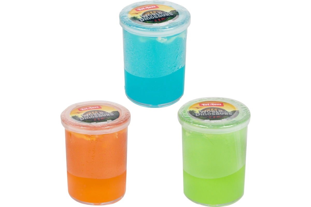 Otkrijte zabavni šareni slime s ukritom dinosaurovom kosti koji će oduševiti djecu svojom elastičnošću i iznenađenjem unutra. Odličan za senzorno igranje, finu motoriku i olakšavanje stresa. U praktičnoj plastičnoj čašici, više boja ovisno o dostupnosti, masa 120 g, dimenzije pakiranja 7,5 × 6 cm. Prikladno od 3 godine.