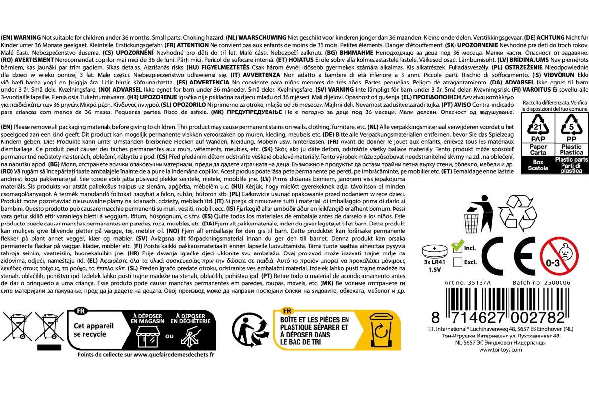 Otkrijte svijet tajnih poruka uz zabavni set za male agente. Sadrži 2 nevidljive olovke, UV svjetiljku s baterijama u pakiranju i posebne naočale s retrovizijom. Idealna igračka za djecu od 3 godine koja potiče maštu i kreativnost.