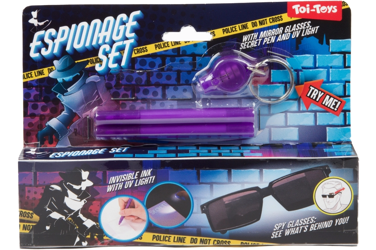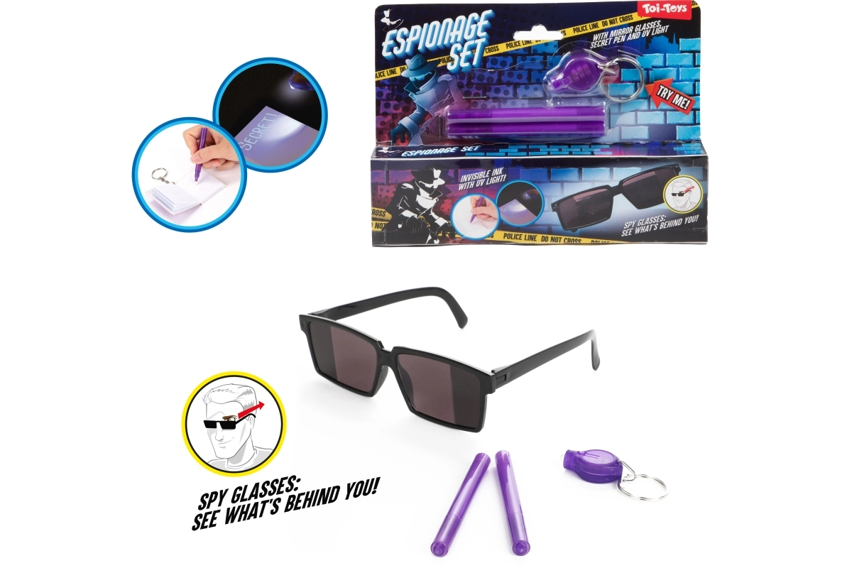 Uz ovaj špijunski set djeca postaju majstori tajnih misija. Poruke napisane posebnim tintom vidljive su samo pod UV svjetlom, pa će svaka pustolovina biti još uzbudljivija. Naočale s retrovizijom omogućuju malim špijunima da neprimjetno prate što se događa iza njih.
