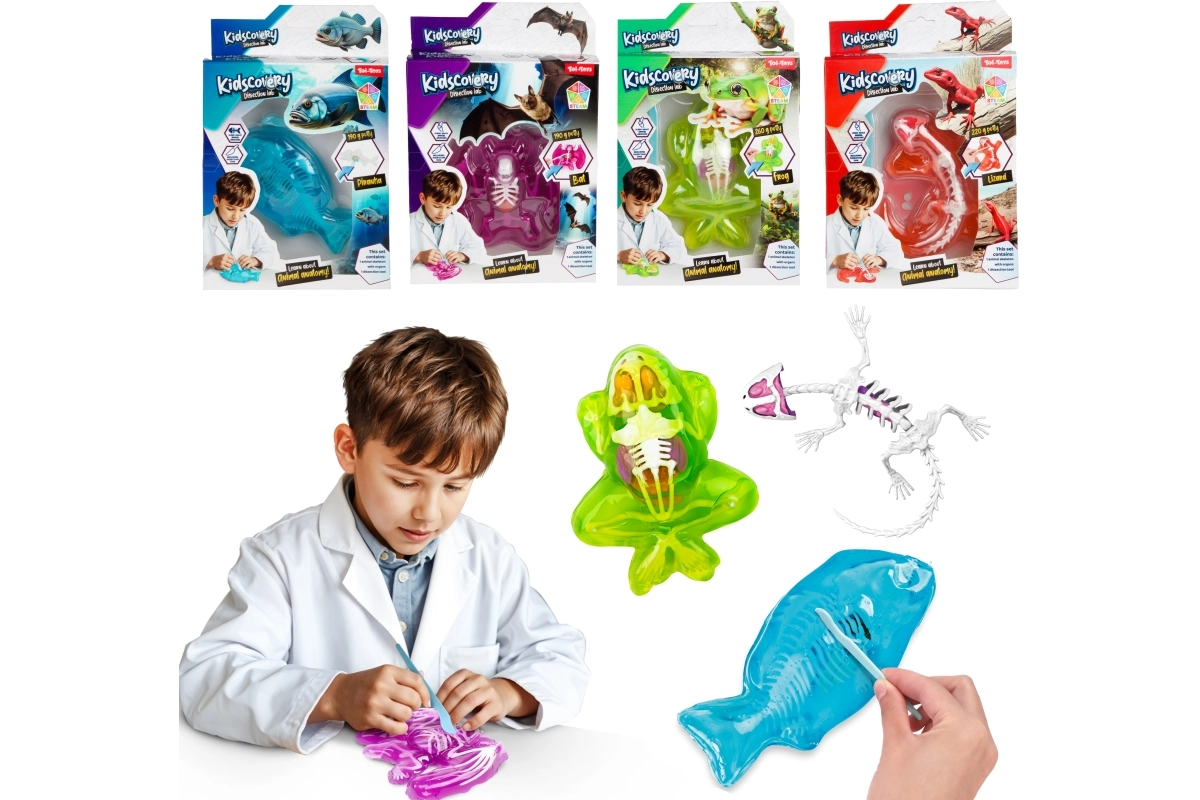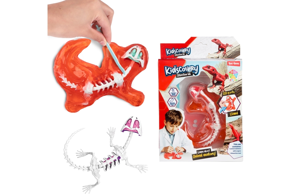 Uđite u svijet otkrivanja s istraživačkim setom sa sluzom koji skriva kostur životinje izravno u sluzi. Djeca će uživati u potrazi i sastavljanju kostiju, dok vježbaju finu motoriku i strpljenje. Praktični plastični alat pomaže pri sigurnom i čistom vađenju kostura.