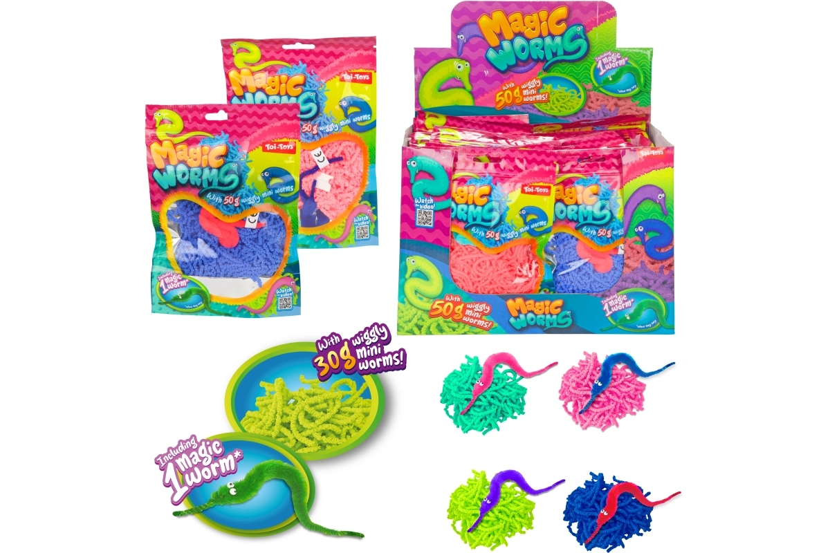 Magične gliste sjajna su igračka i party trik koji zabavlja i djecu i odrasle. Zahvaljujući vrlo tankoj niti glista se kreće tako da djeluje gotovo živo – provlači se među prstima, penje po stolu i stvara neočekivane kreacije. Mekan i pahuljast materijal ugodan je na dodir i siguran za djecu od 3 godine.