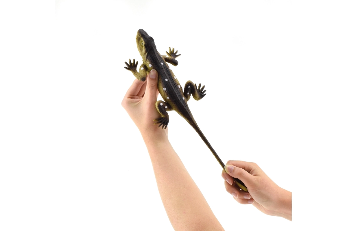 Ova rastezljiva gumena gušterica izvrstan je izbor za maštovitu igru, razvoj fine motorike i osjetilnog doživljaja. Zahvaljujući teksturiranoj površini i kuglicama unutar trbuščića nudi antistresni i taktilno poticajan doživljaj. Djeca mogu guštericu rastezati, stiskati i oblikovati te tako otkrivati strukture i oblike.