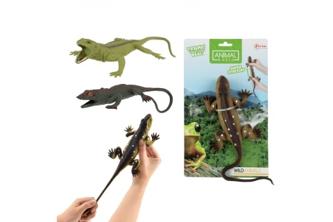 Igračka je izrađena od kvalitetne plastike s elastičnim elementima, jednostavna je za održavanje i idealna za dječju sobu, vrtić i putovanja. Pakirana je na kartonu za jednostavno darivanje. Dimenzije gušterice cca 24 × 12 × 3 cm savršeno pristaju maloj ruci i potiču sigurnu igru.