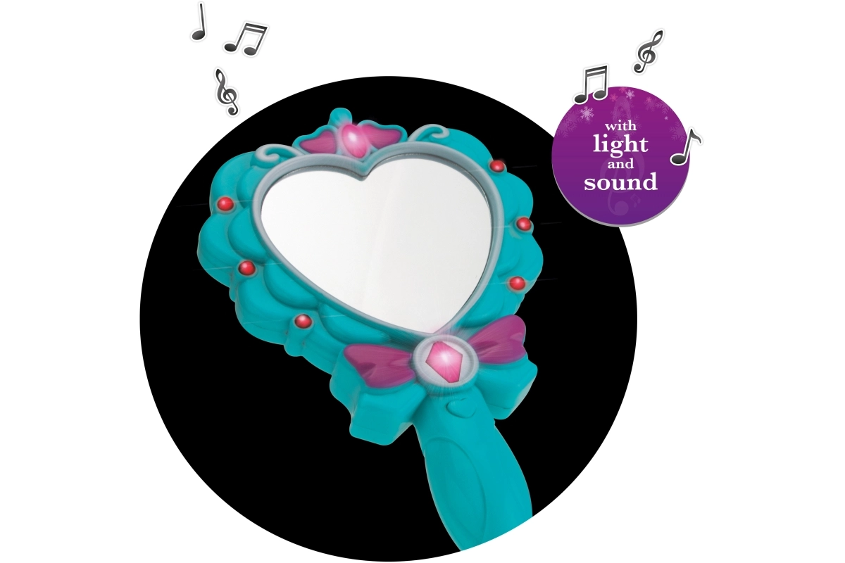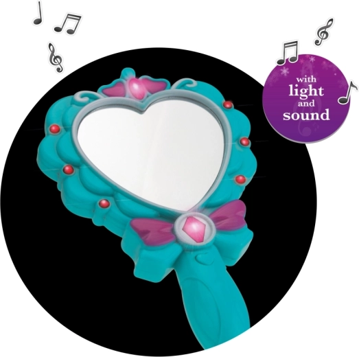 Priuštite djeci čaroban trenutak s magičnim zrcalcem u obliku srca. Razigrani svjetlosni efekti i ugodna melodija nakon pritiska na gumb stvaraju bajkovitu atmosferu. Zrcalce je dizajnirano za male ručice i zahvaljujući sigurnoj izradi idealno je za svakodnevnu igru.