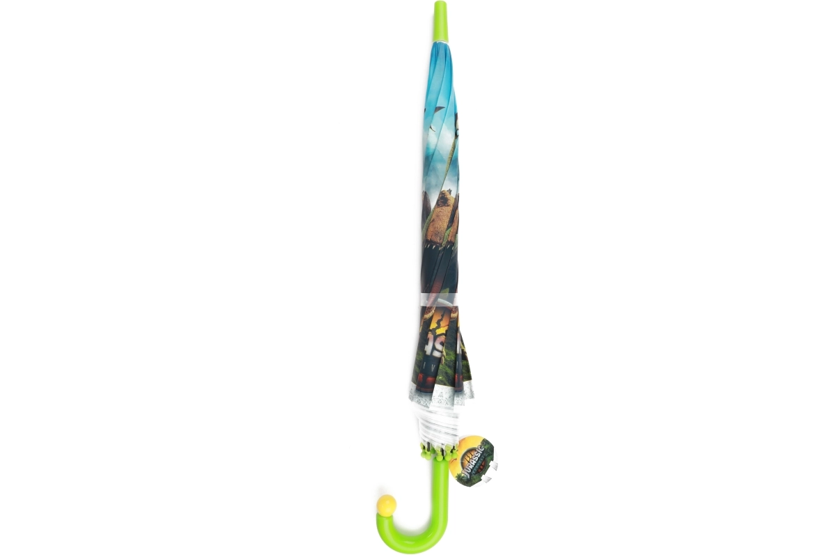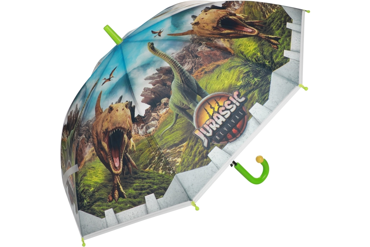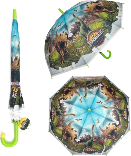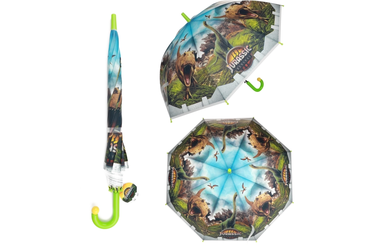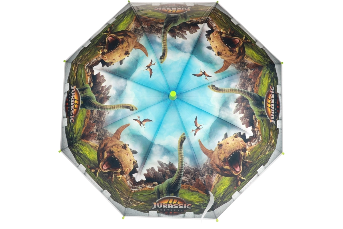 Otkrijte zabavan i praktičan dodatak za kišu: dječji kišobran s motivom dinosaura i logotipom Jurassic World. Šareni tisak, izdržljiva višedijelna tkanina kupole i metalna rebra osiguravaju da dijete ostane suho i pritom uživa u originalnom dizajnu.