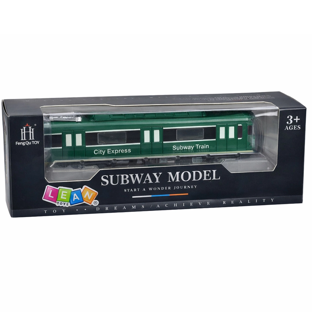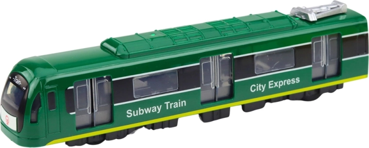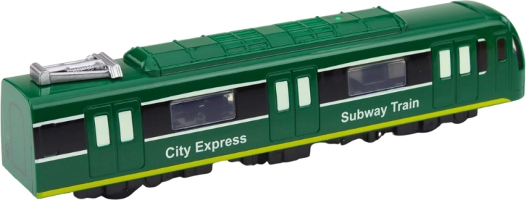 Realističan zeleni model metroa CITY EXPRESS razveselit će male ljubitelje gradske vožnje. Nudi svjetlosne i zvučne efekte, vrata koja se otvaraju upravljana klizačem na krovu i izdržljivu plastičnu izradu. Kompaktne dimenzije idealne su za igru kod kuće i potiču maštu i kreativnost djece.