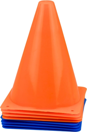 Praktičan set za igre kretanja i prve nogometne treninge sadrži 8 laganih trening čunjeva u visokoj vidljivosti (narančasta i plava) te lopticu promjera 8 cm. Izdržljivi plastični čunjevi lako se slažu jedan na drugi, imaju stabilno kvadratno postolje s otvorima za učvršćivanje i idealni su za slalom, vježbe agilnosti i mini poligone s preprekama kod kuće i na otvorenom.