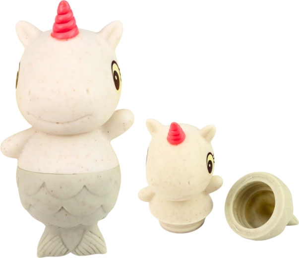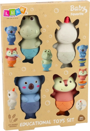 Set četiriju šarenih životinjica – krokodil, koala, lisica i jednorog – pretvara svako kupanje u radosnu pustolovinu. Zahvaljujući mekoj, podatnoj gumi igračke se lako drže i najmanjim rukama i nježne su prema osjetljivim ručicama. Pastelne boje i simpatični izrazi potiču maštu i osjetilnu percepciju.