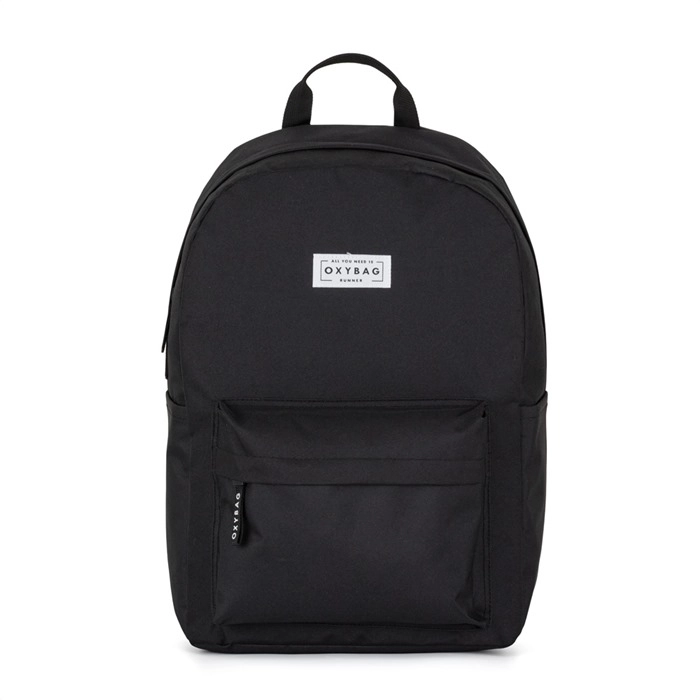 Stilizirani ruksak OXY Runner Black osvaja čistim dizajnom i funkcionalnom izvedbom. Glavni prostrani pretinac sigurno prima udžbenike, bilježnice i pernicu, dok je manji prednji džepić idealan za ključeve, novčanik ili manju užinu. Podstavljene i podesive naramenice zajedno s udobnim stražnjim panelom (duljina 44 cm) osiguravaju komfor i pri duljem nošenju.