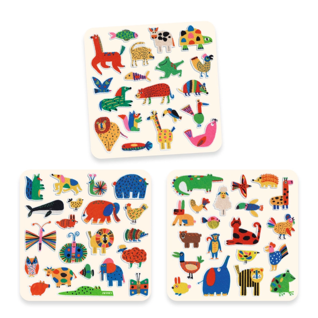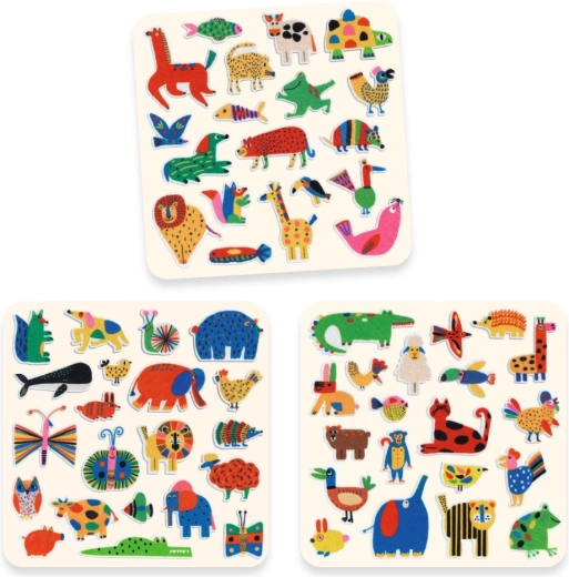 Set Djeco naljepnica Životinje posvuda donosi zabavne motive životinja koje djeca vole. Jednostavno i nježno lijepljenje omogućuje ponovno lijepljenje i laku manipulaciju bez trganja papira. Djeca tako uvježbavaju koordinaciju oko–ruka i proširuju rječnik prepoznajući životinje.