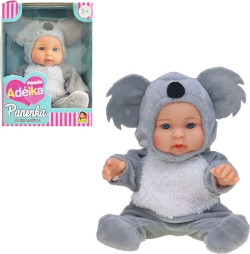 Preslatka lutka u kostimu koale razveselit će svaku malu njegovateljicu. Ima kompaktne dimenzije od 22,5 cm, izrađena je od izdržljivog vinila i idealna je za svakodnevnu igru. Mekan, simpatičan kompletić, vinilno tijelce i sigurna izrada za djecu od 3 godine čine je savršenim poklonom.