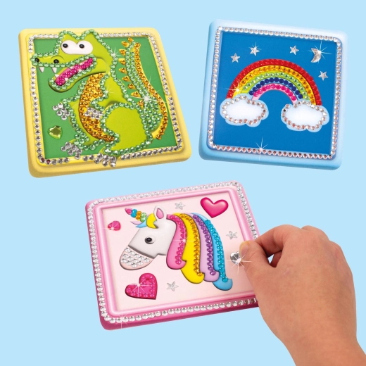 Otkrijte čaroliju diamond paintinga i pretvorite slobodno vrijeme u kreativno iskustvo. Ovaj set donosi tri motiva na čvrstim predlošcima dimenzija 18 × 21 cm te sav pribor koji vam je potreban za ugodno lijepljenje kamenčića. Zahvaljujući jednostavnom postupku, prikladan je za početnike i djecu pod nadzorom odraslih.