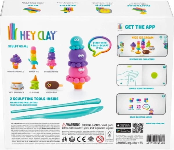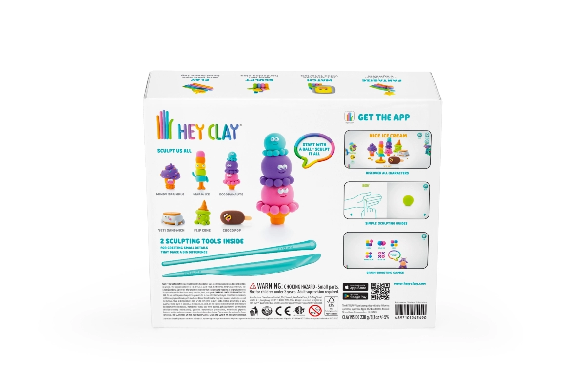 Set Hey Clay Sladoled donosi svježu dozu kreativnosti za male i velike stvaratelje. Zahvaljujući laganoj, šarenoj i samoutvrđujućoj masi djeca lako oblikuju originalne sladoledne figurice koje nakon sušenja zadržavaju oblik te mogu poslužiti kao dekoracija ili poklon.