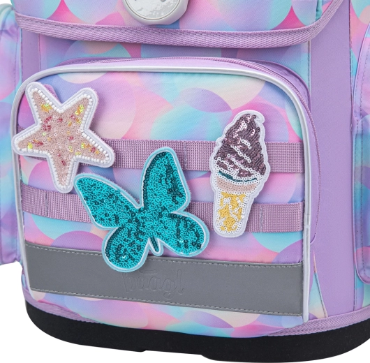 Školski set BAAGL Ergo Candy dizajniran je za maksimalnu udobnost, red i sigurnost. Ergonomski oblikovana aktovka s čvrstim dnom održava stabilan oblik, niska masa koja ne prelazi 1200 g štedi leđa, a vodootporan materijal štiti školski pribor po svakom vremenu. Intuitivno magnetsko zatvaranje Fidlock omogućuje djeci brzo otvaranje i zatvaranje jednom rukom.