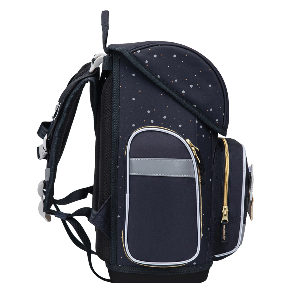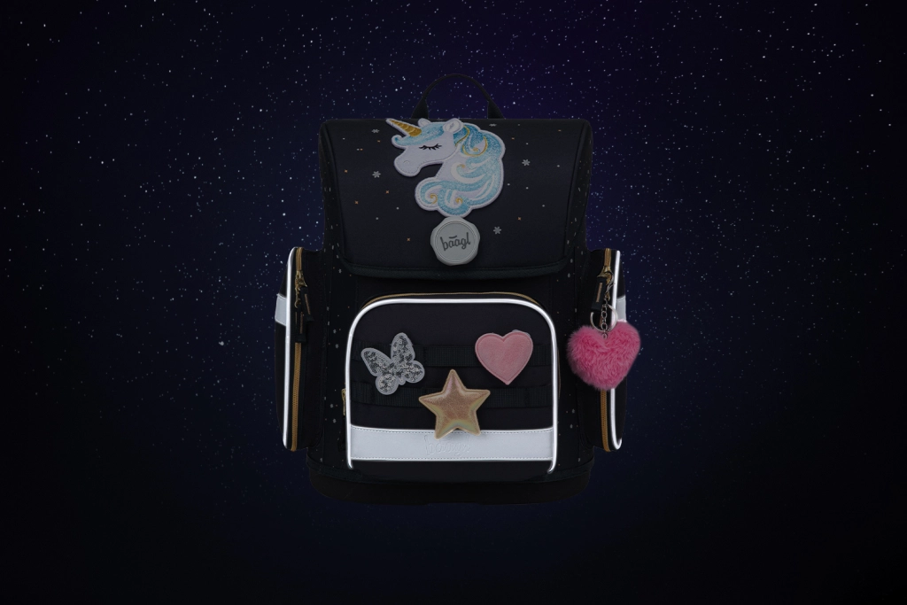 Kompletna školska oprema za niže razrede u elegantnom stilu Unicorn Gold. Set uključuje ergonomsku aktovku s anatomskim leđima i magnetnim zatvaranjem Fidlock, jednoslojnu pernicu, vrećicu za obuću, dječju pregaču i novčanik za nošenje oko vrata. Naglasak na maloj težini, reflektirajućim elementima i praktičnoj organizaciji osigurava sigurno i udobno nošenje tijekom cijelog školskog dana.