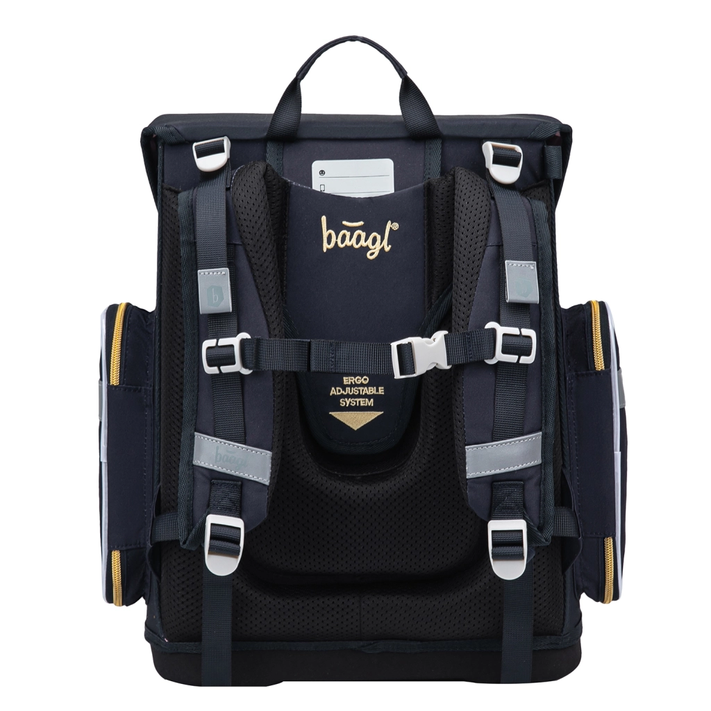 Školski set BAAGL Ergo Unicorn Gold osmišljen je za djecu od 1. razreda osnovne škole. Aktovka s ERGO Adjustable System raste s djetetom, ima čvrsto dno, vodootporan materijal i reflektirajuće elemente za sigurnost. Intuitivna Fidlock brava olakšava otvaranje, prednji džep je izoliran, a bočni džepovi primaju bocu za piće. Unutra se nalazi pregledan organizator s rasporedom i zateznim remenom za teže udžbenike.