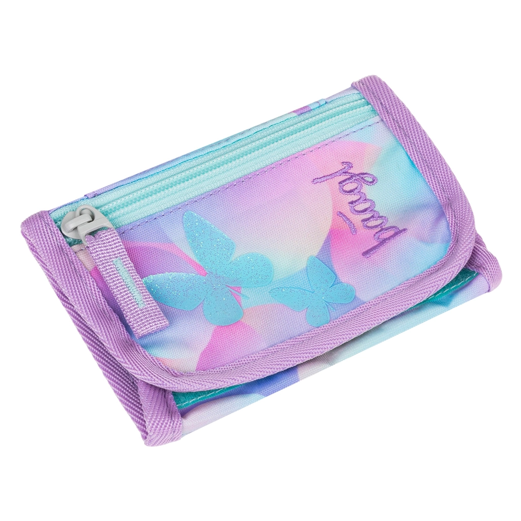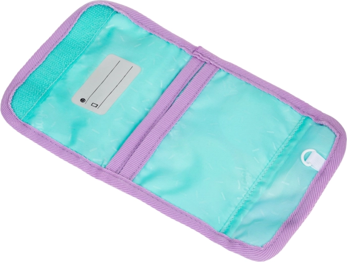 Novčanik za oko vrata Baagl Candy idealan je izbor za školu, aktivnosti i izlete. Kombinira laganu izradu, svjež pastelni dizajn s motivom leptira i promišljenu raspodjelu pretinaca. Zahvaljujući prozirnoj oznaci za ime više se neće izgubiti, a sve važno bit će sigurno pohranjeno i brzo dostupno.