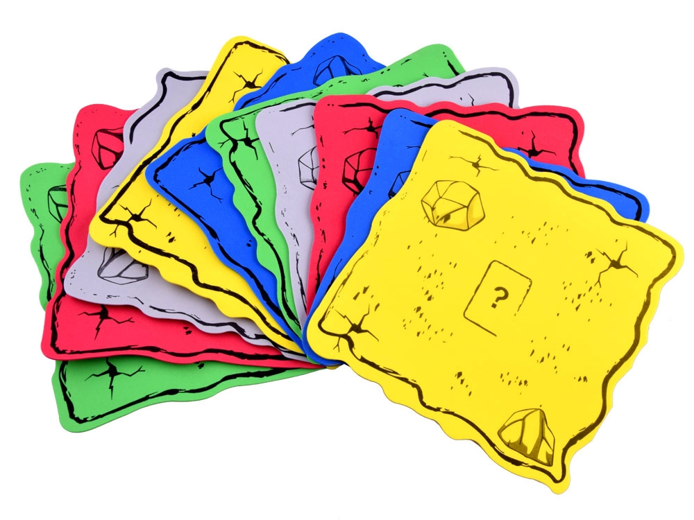 Set sadrži 20 izdržljivih pjenastih podloga u tri veličine, 27 kartica s uputama i zvrk s kazaljkom. Igra potiče grubu motoriku, brzo odlučivanje i suradnju – može se igrati protivnički ili timski.