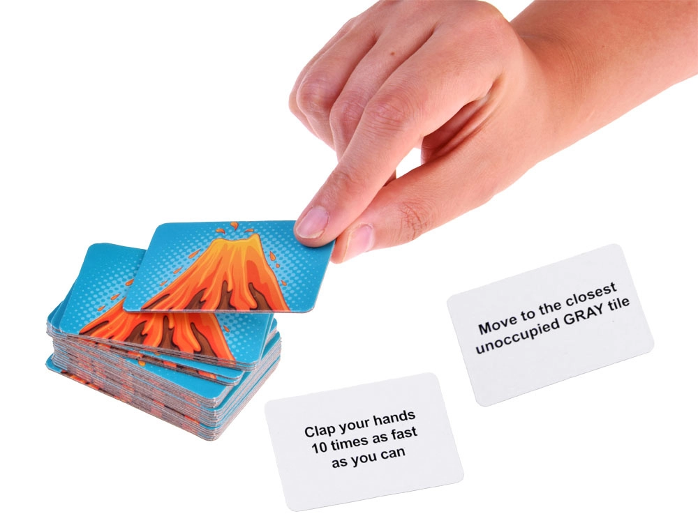 Rasporedite šarene pjenaste “kamenje”, zavrtite kazaljku i krenite u pustolovnu vožnju preko tokova lave. Igrači se brzo premještaju na izvučenu boju i izvršavaju zabavne pokretne zadatke s karata. Varijabilna pravila drže djecu u pokretu i jamče napetu igru bez ekrana.