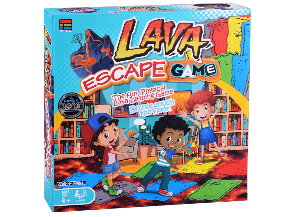 Zabavna obiteljska igra za djecu od 4 godine naviše u kojoj je pod prepun vruće lave, a sigurnost pružaju samo šarene “kamene” pjenaste podloge. Kretanje određuju zvrk s kazaljkom i karte zadataka, pa je svako kolo drukčije. Odlično za razvoj ravnoteže, spretnosti i timske suradnje kod kuće i u vrtiću.