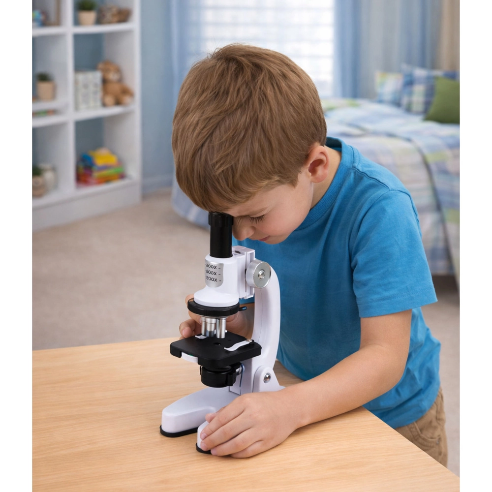 Otkrijte svijet pod lećom s dječjim mikroskopom s tri razine povećanja 200× / 600× / 1200×. Stabilna konstrukcija, precizno fino podešavanje i bogat laboratorijski pribor omogućuju malim istraživačima pripremu vlastitih preparata te razvoj logičkog razmišljanja i radoznalosti na zabavan način.