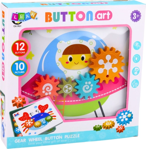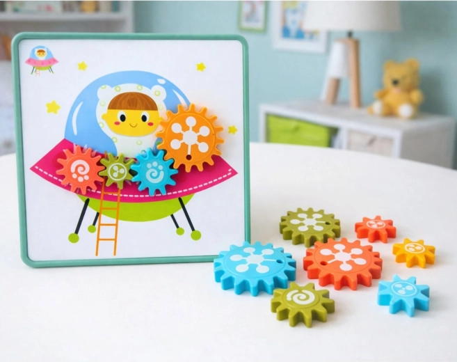 Otkrijte zabavnu i poučnu igru za male inženjere! Ova kreativna mozaika sa zupčanicima potiče finu motoriku, logičko razmišljanje i razumijevanje uzroka i posljedice. Djeca slažu šarena zupčanika na ilustrirane podloge, povezuju ih i jednim okretajem pokreću cijelu sastavu.