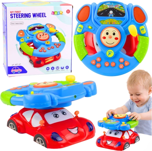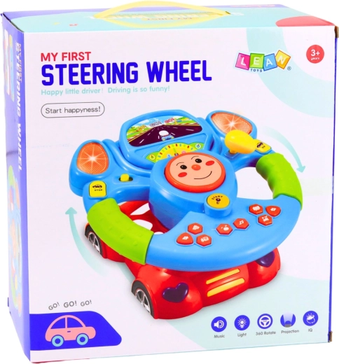 Zabavni interaktivni volan za male vozače spaja simulator vožnje, glazbenu konzolu i svjetlosne LED efekte. Zahvaljujući ugrađenom projektoru sa slikom pande, realističnim zvukovima sirena i melodijama, razvija finu motoriku, koordinaciju oko–ruka i maštu. Ergonomski oblik pristaje dječjim ručicama, a sigurna izrada od kvalitetne plastike osigurava bezbrižnu igru.