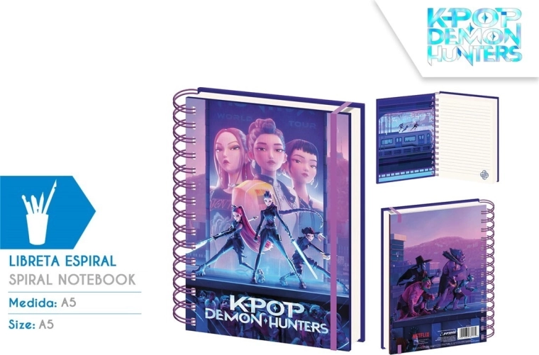 Otkrijte praktičnu i dizajnerski atraktivnu spiralnu bilježnicu A5 s jedinstvenim motivom Demon Hunters nadahnutim svijetom K-popa. Bilježnica je izvrstan izbor za svakodnevne bilješke, planiranje ili vođenje osobnog dnevnika. Zahvaljujući kvalitetnoj spirali, stranice se lako okreću, a bilježnica se udobno otvara u ravninu.