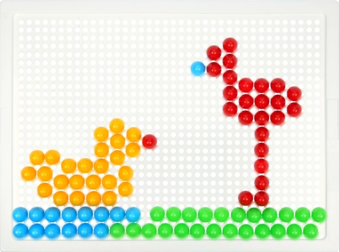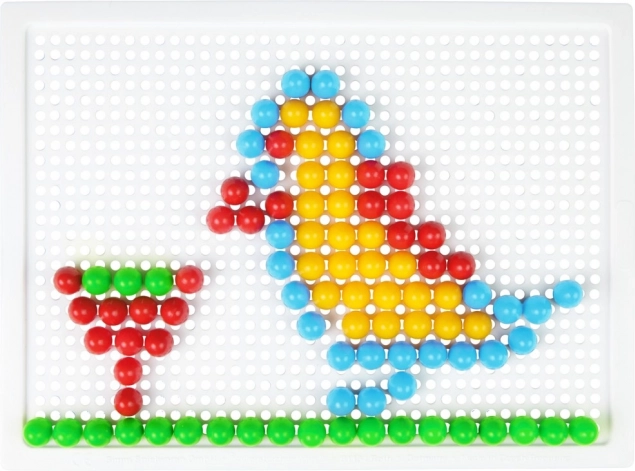LENA mozaik sa 100 šarenih čepića idealan je izbor za kreativnu igru kod kuće i u vrtiću. Zahvaljujući jednostavnom sustavu umetanja čepića u perforiranu ploču, djeca vježbaju koordinacijske vještine i strpljenje dok stvaraju vlastite motive – životinje, vozila ili maštovite uzorke.