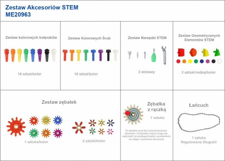 - svi MASTERKIDZ dodaci za STEM ploče (zupčanici, vijci, klinčići, cijevi, kuglične staze itd.)