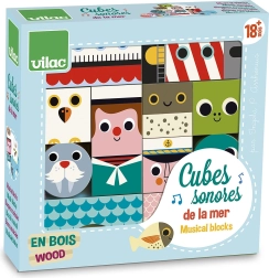 Senzorne drvene kocke s morskim motivima donose djeci radost otkrivanja oblika, boja i zvukova. Tijekom trešnje i slaganja djeca vježbaju hvat, koordinaciju i koncentraciju, dok različiti zvučni elementi potiču njihovo slušno opažanje. Ilustracije Ingele P. Arrhenius daju setu jedinstven retro štih i razigran karakter.