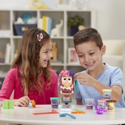 S ovim frizerskim setom Play-Doh lude frizure nastaju u tren. Posadite figuricu u stolac, pritisnite i iz glave će izrasti šarena griva koju možete dalje šišati, češljati i ukrašavati. Višebojna masa za modeliranje i zabavni dodaci pretvaraju svako šišanje u novu priču punu mašte.