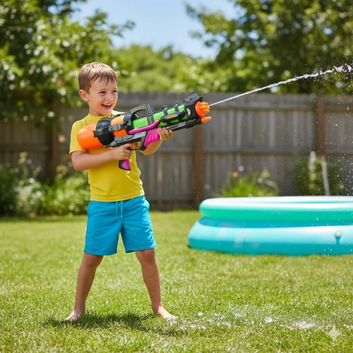 Ovaj robusni vodeni pištolj izvrstan je za vrt, plažu i bazen. Zahvaljujući duljini od 60 cm i spremniku 1,25 l može pucati dulje, dok pumpni mehanizam osigurava gladak i zabavan obračun za svaki cilj. Žive boje povećavaju vidljivost i daju igri stil.