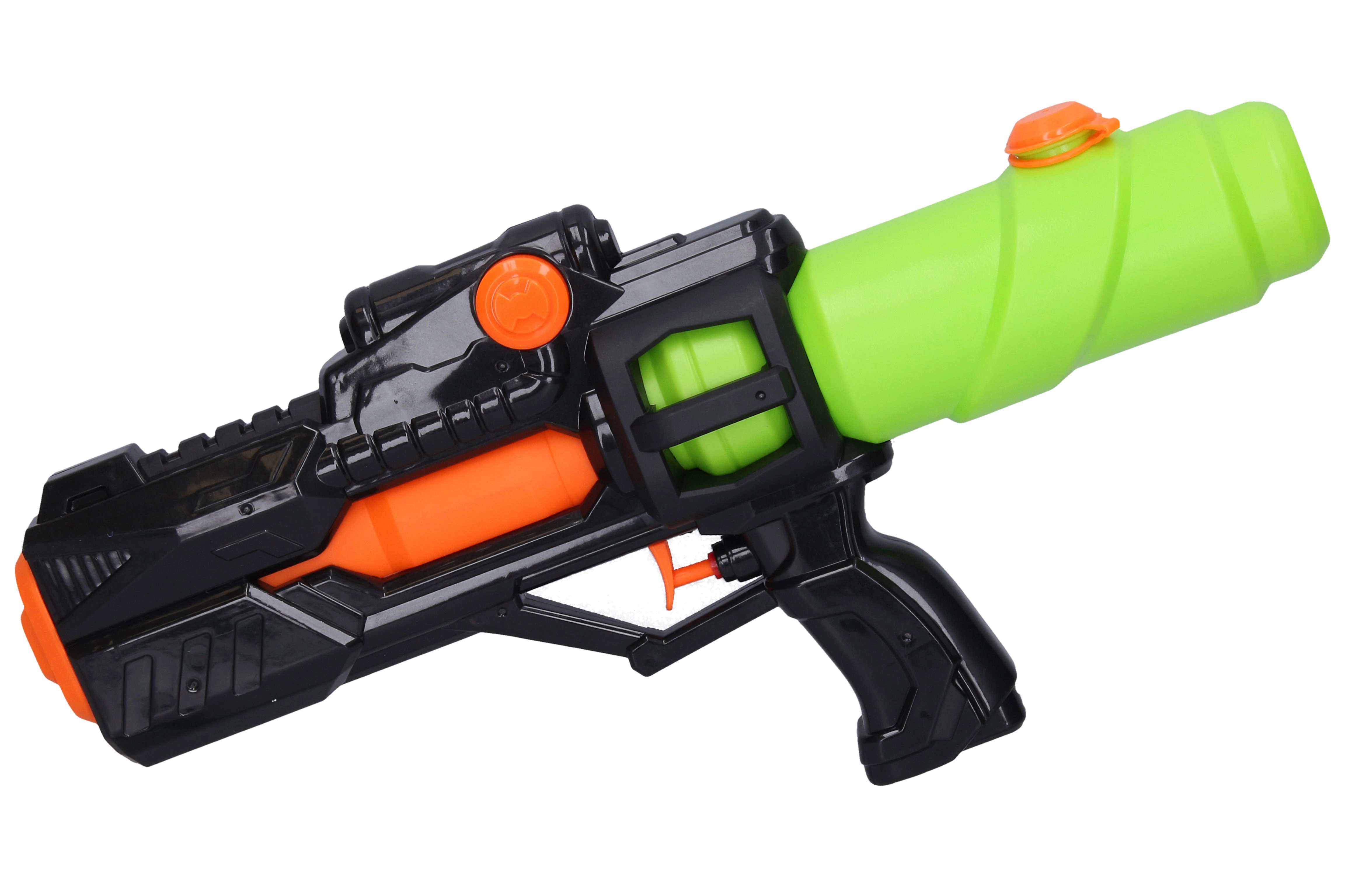 Uživajte u beskrajnoj ljetnoj zabavi s ovim vodenim pištoljem duljine 38 cm. Zahvaljujući velikom spremniku, udobnoj pištoljskoj ručki i lakom punjenju pomoću navojnog čepa, idealan je za djecu i odrasle u vrtu, uz bazen i na plaži. Dostupan u 3 varijante boja – plava, crna i narančasta.