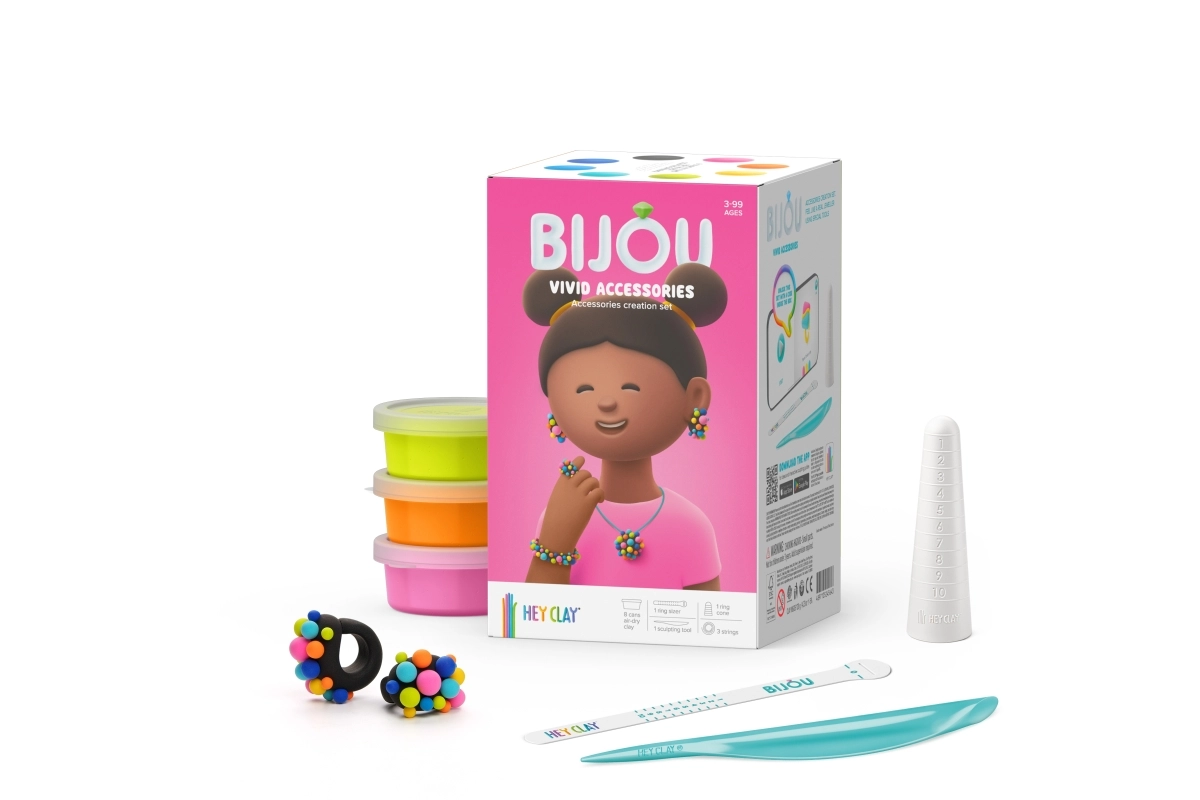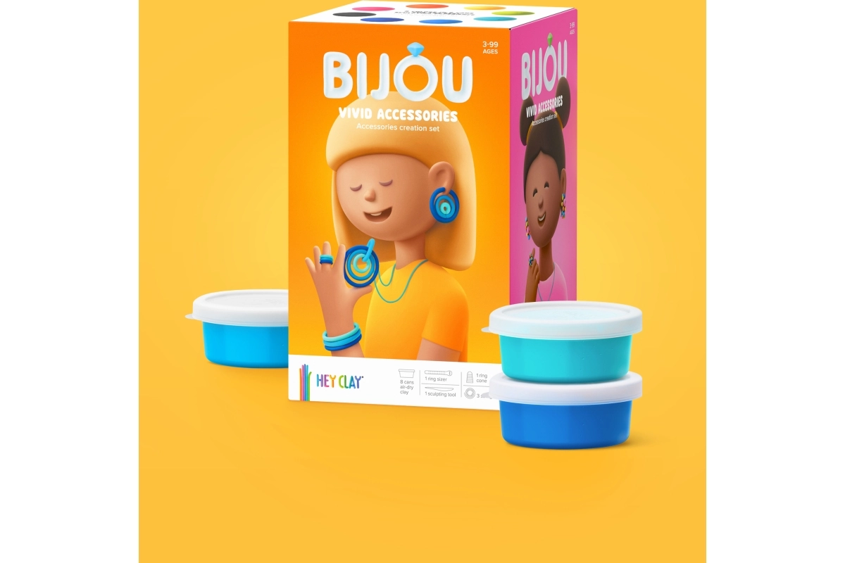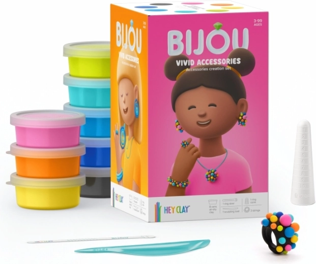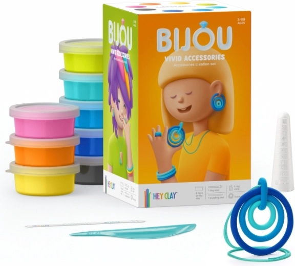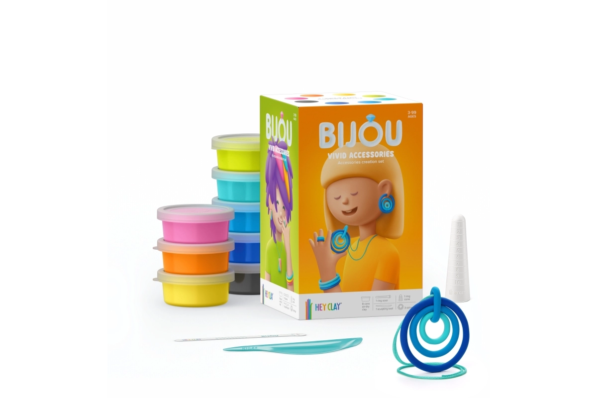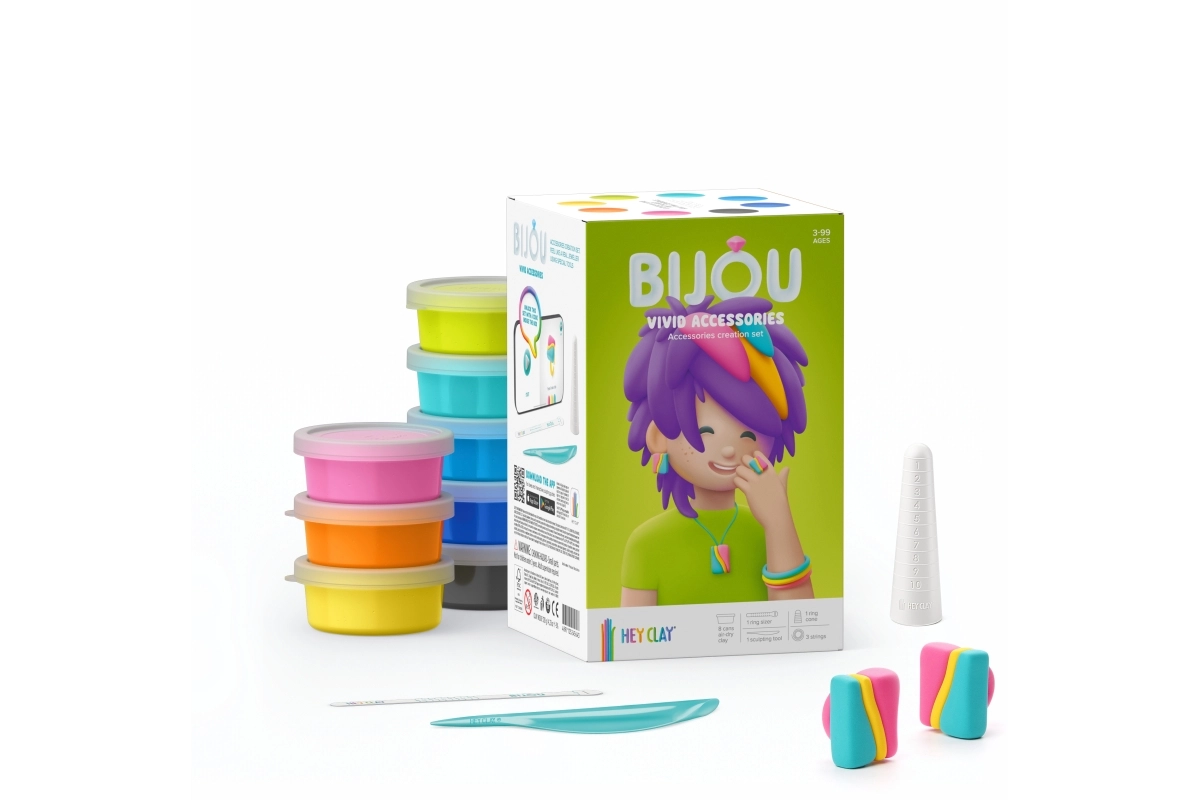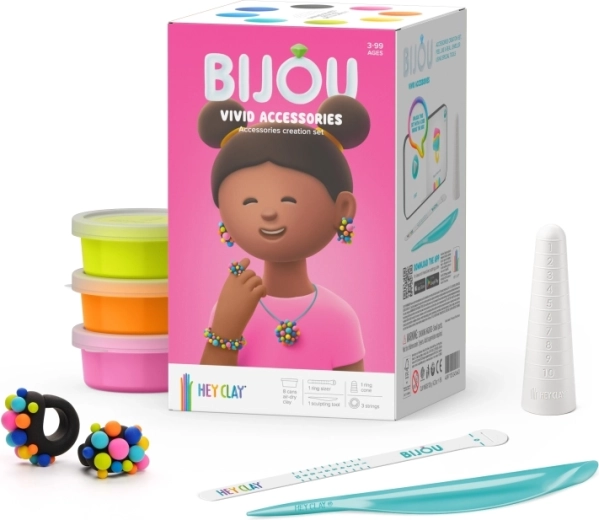 Set HEY CLAY Bijou Vivid idealan je za male kreativce koji vole boje i originalne dodatke. Zahvaljujući mekoj modeliranoj masi, djeca mogu lako izrađivati perlice, privjeske i druge ukrase koji nakon stvrdnjavanja na zraku lijepo zadržavaju oblik.
