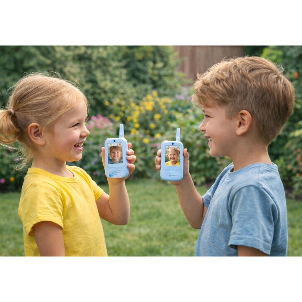 Priredite djeci zabavnu i sigurnu komunikaciju kod kuće i na otvorenom. Ovi plavi dječji voki-toki omogućuju ne samo klasičnu pritisni‑i‑govori (PTT) vezu, već i videopozive na ugrađenom zaslonu, snimanje fotografija i snimanje videa. Jednostavni izbornik s mogućnošću odabira jezika olakšava upravljanje i najmlađim korisnicima.