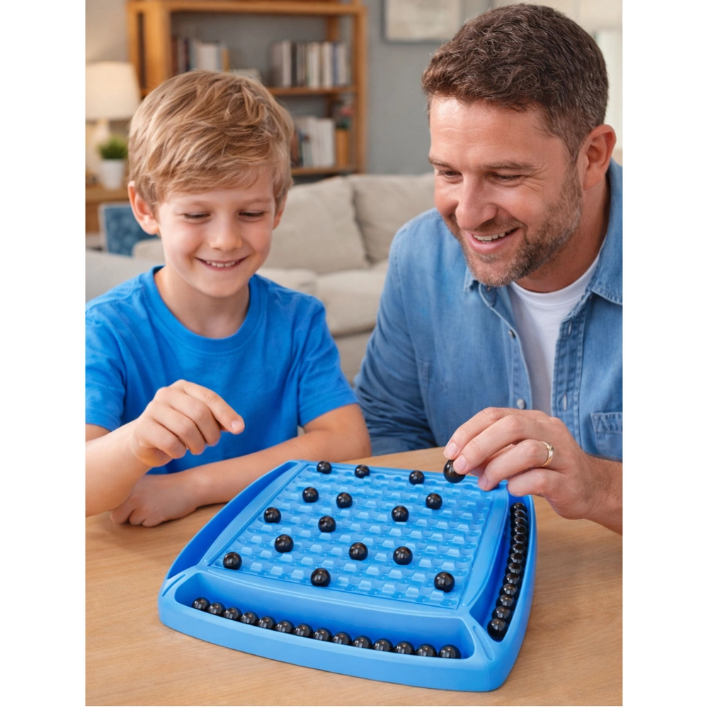 Izdržljiva plastična ploča sa posebno oblikovanim poljima pomaže stabilno postavljati kuglice i održava igru preglednom. Brza pravila, kratka vremena partije i visoka mogućnost ponovnog igranja čine ovaj set savršenim poklonom i zabavom za putovanja.