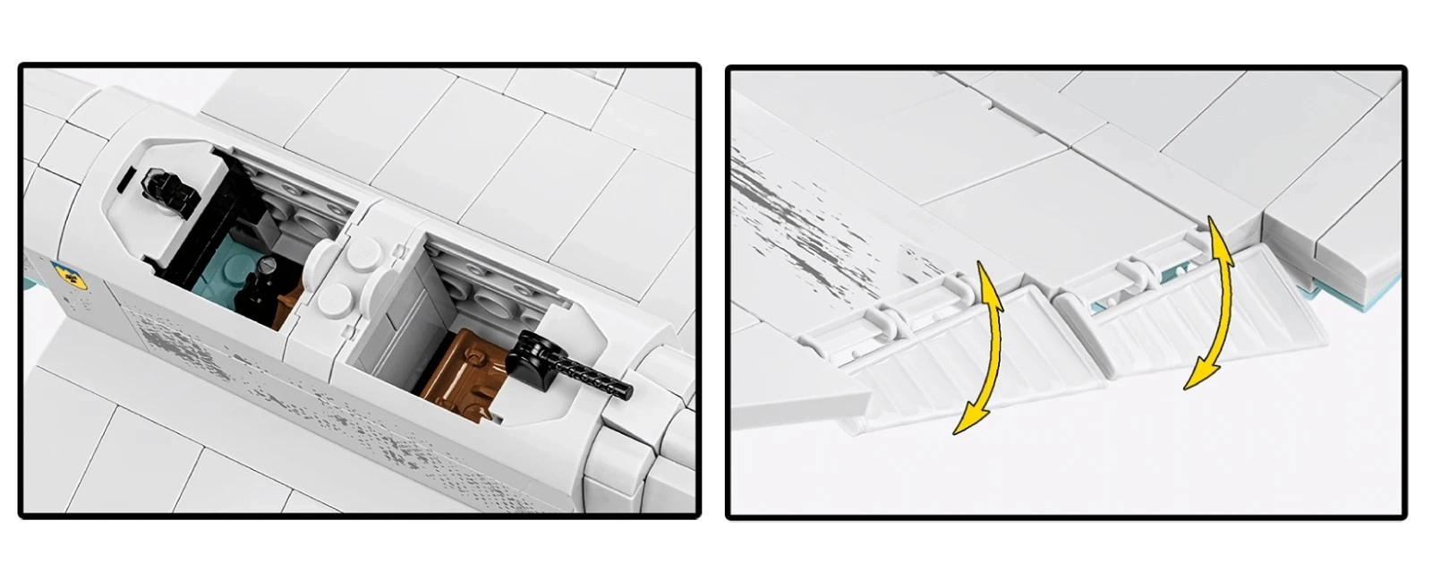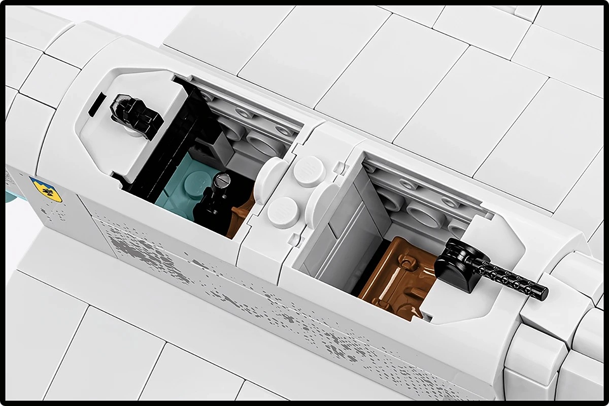 Set naglašava igrivost i izlaganje: otvoriva kabina omogućuje smještaj pilota, propeler se okreće, kotači s gumenim gumama glatko se vrte, a pokretne površine daju modelu dinamiku. Specijalno postolje s nazivom zrakoplova ističe kolekcionarski karakter i omogućuje izlaganje modela „u letu“.