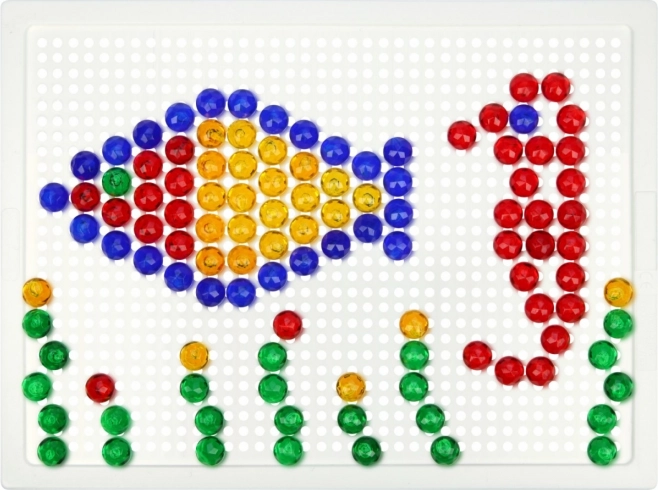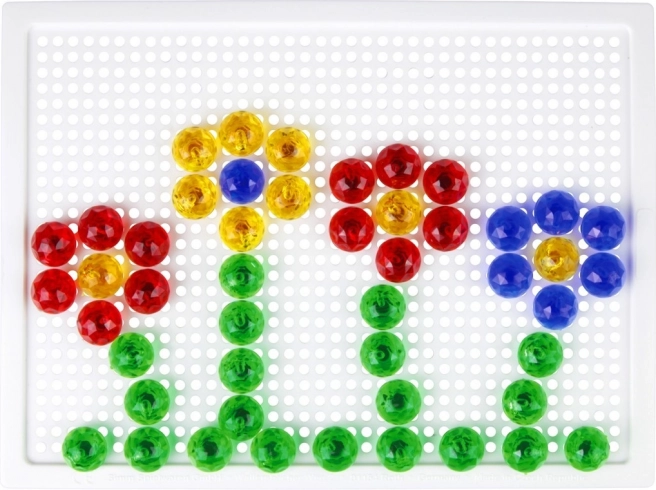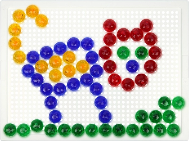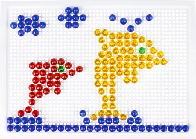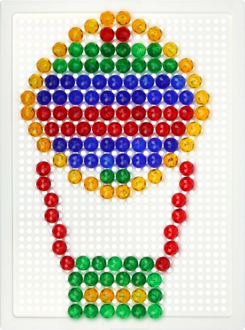 Sadržaj pakiranja uključuje podlogu s mrežicom i 260 kristalnih klobučica promjera 10 mm. Zahvaljujući velikom broju dijelova djeca mogu stvarati raznolike slike, kombinirati boje i unapređivati svoje strpljenje i kreativno razmišljanje – bez potrebe za predlošcima.